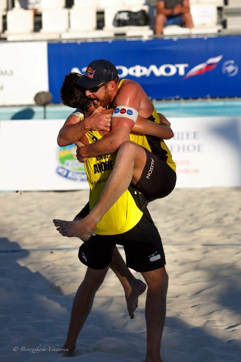 Em 2017 então, André se junta a Evandro, e logo na primeira etapa juntos conquistam uma prata no Circuito Mundial. Naquele ano André se torna o mais jovem atleta a vencer o Campeonato Mundial, em Viena. Conquistam juntos ainda o título da temporada do Circuito Mundial e Brasileiro, além de outras medalhas.